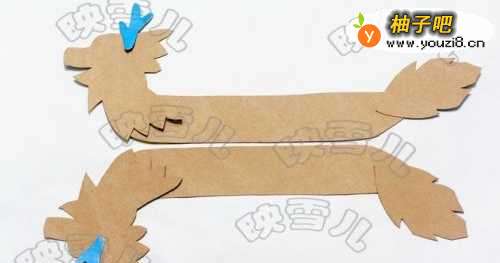 5纸皮剪出龙头龙角和和龙尾。