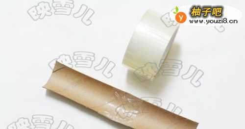 2将纸筒剪开两半。用透明胶相连接做成船底。
