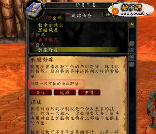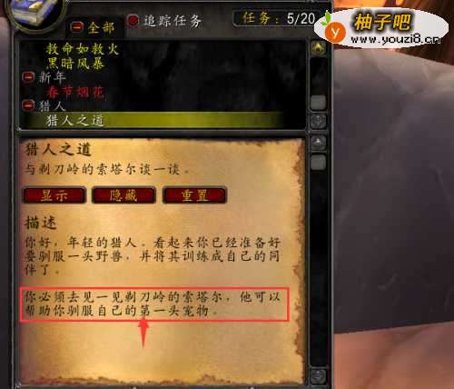我们到达10级之后在训练师那里会出现猎人之道的任务。