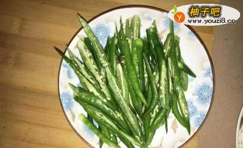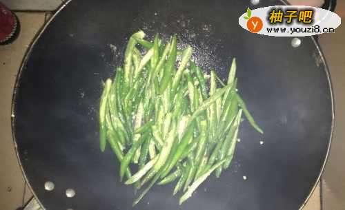 放油,然后炒辣椒,如果你能吃很辣的,那么就不要炒那么久,如果不能吃那么辣,那就炒久一点。