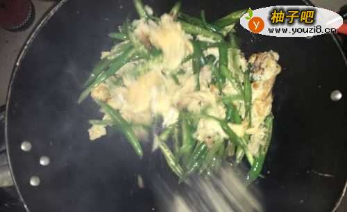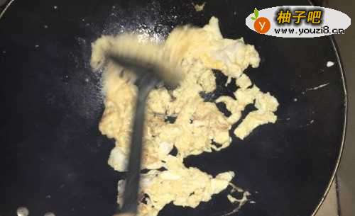 放油,然后把蛋搅拌均匀,记得不要烧焦。