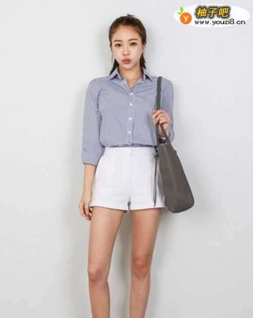 搭配三:白色短裤+蓝白条纹棉麻衫蓝白条纹的衣服很适合夏天,这款蓝白条纹棉麻衫是非常舒适、凉快的,搭配一条白色短裤十分小清新。