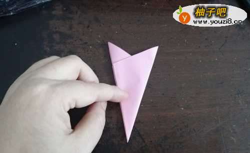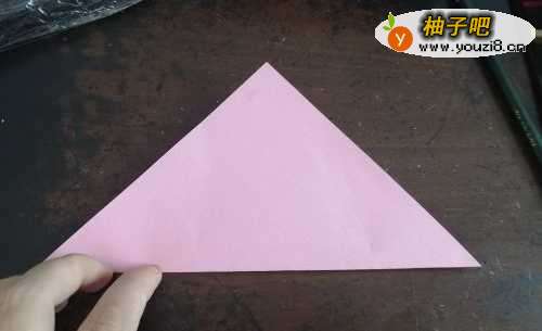 4然后再把彩纸从中间对折,如下图的样子。