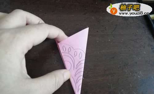 5我们在折纸上画上孔雀羽毛的图案,如图所示。