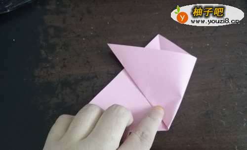 2先把彩纸的两角对折,再把左右角对折。