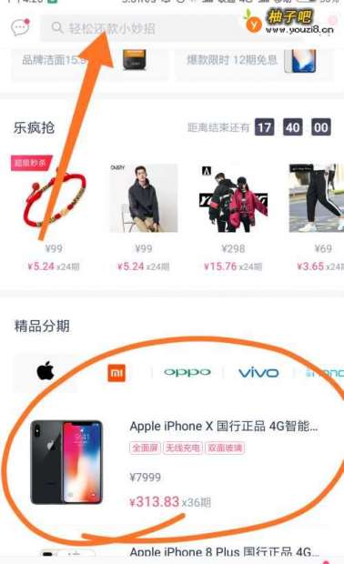 2能在首页搜索你要购买的物品,我以iPhonX为例。当然你也能直接搜索你想要的商品。