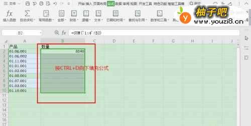 4选择单元格【B2:B10】,按【CTRL+D】向下填充公式即可。