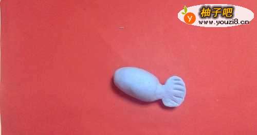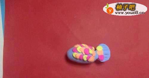 如图,选择自己喜欢的颜色的手工材料,捏制出小鱼的身体部分。