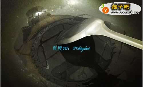 5启用电磁炉,往锅内加入适量的油,倒入肉松鸡蛋液煎一会,成型后后将其盛出。