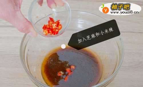 3再加入芝麻,小米辣搅拌成酱汁备用。