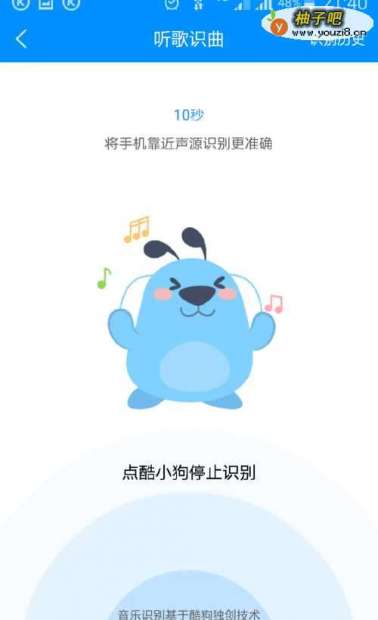 3这样就进入了识别界面,播放器会自动识别听到的歌曲,一般十秒钟左右就能识别完成。如图所示: