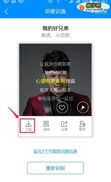 5准确地识别出歌曲名之后,就会出现同步的歌词。点击界面中的下载按钮就能下载这首歌曲了。如图所示: