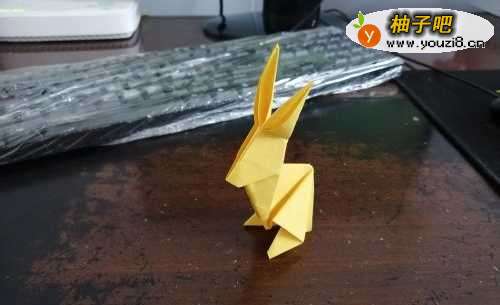 今天,我们来折一个会站立的小动物。远远的看去应该和兔子或者袋鼠差不多,大家认为它是什么就是什么吧。