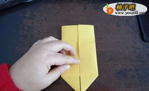 4翻到另一面,把下面的角向上折,如图一。然后从中间对折,把上边的部分向下折。