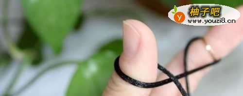 5接下来大拇指这边的线尾在上,食指的线尾在上。