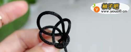 6此后食指的线尾从下往上穿过中间的线。调整一下就像一个花篮一样。