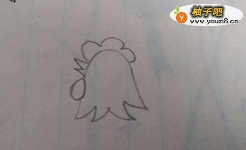 2然后再把尖嘴和鸡冠画出来,如图。