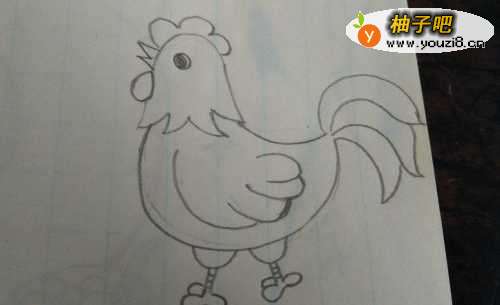 4还有公鸡漂亮的大尾巴也给描绘出来,如图。