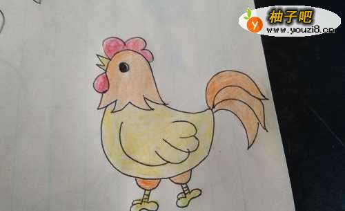6最后,画出鸡的爪子,再用彩铅上色即可。