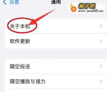 通用设慎番置中,点击“关于本机”;