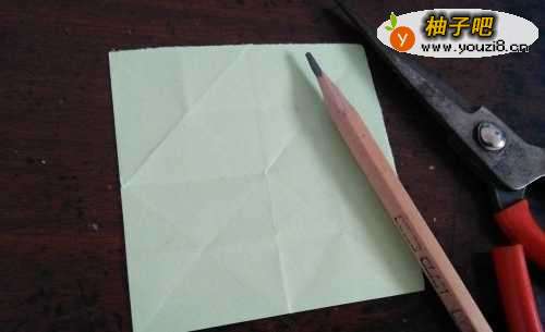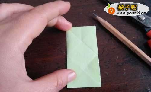 2先把准备好的纸,从中间对折。