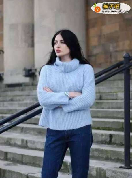 2浅蓝色宽松高领毛衣搭配蓝色牛仔裤,允许给人一种清新典雅的感觉,不但允许很好的彰显出个人的独特气质,同时会显得整个人特别的有味道。