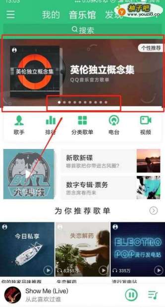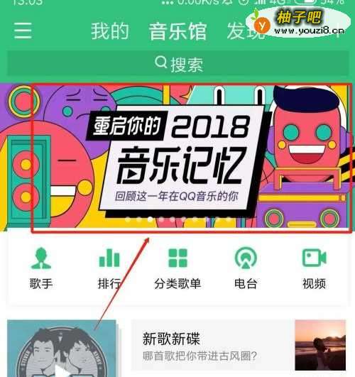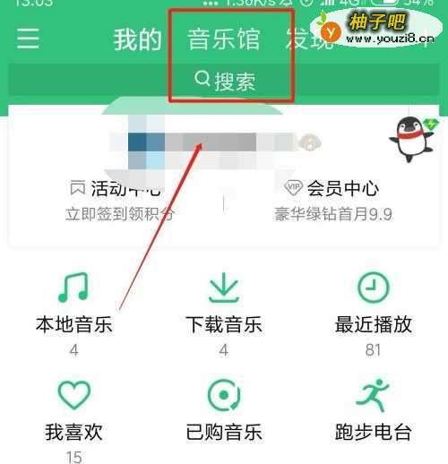 启用QQ音乐,点击 音乐馆