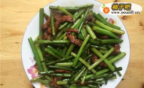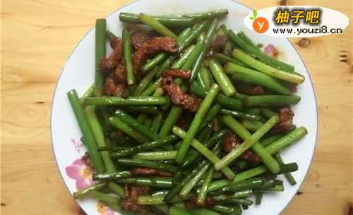 9一盘简单的家常菜蒜台炒肉就这样做好啦!做法是不是很简单呢?