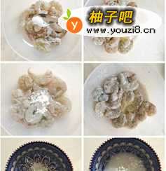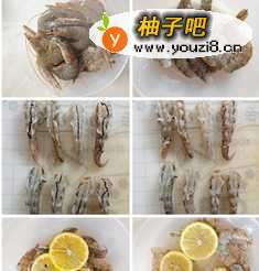 虾去壳去除虾线,用柠檬和姜片加一点水泡15分钟
