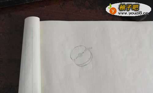 2然后我们给苹果画出苹果把,如图所示。