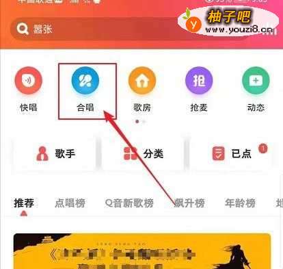 3在界面的顶部菜单中点击“合唱”选项。