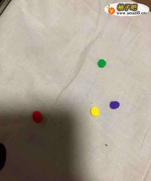3在拿出红色的彩泥揉成个圆形按扁,绿色的彩泥揉成圆形按扁。