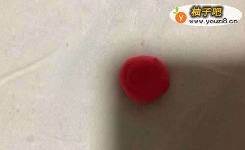2在拿出红色的彩泥揉成圆形按扁,在准备一个牙签。