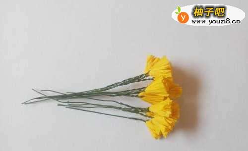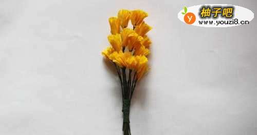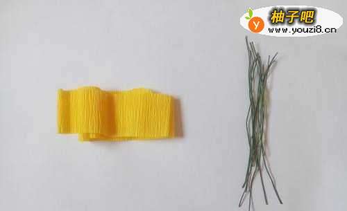 黄色皱纹纸、花杆