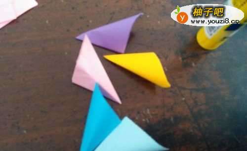 4然后我们把其他的花瓣折好粘在一起就是图二的样子,如下图。