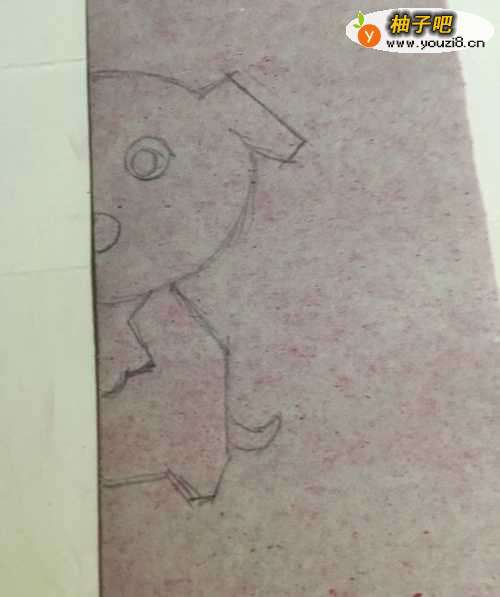 5第五步 涂实好了之后 用手工剪刀开始裁剪 先剪掉小狗外面周围多余的彩纸