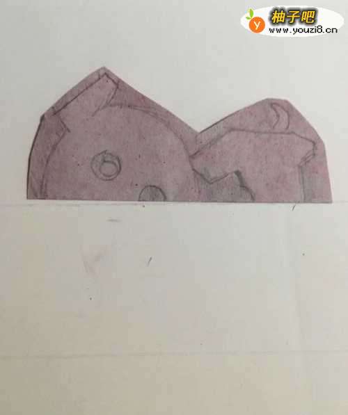 2第二步 对边折叠好之后 再用绘图铅笔靠双边的地方开始 画上小狗的半个头部 和耳朵
