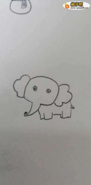 2添上大象可爱的卷卷的鼻子,要往上仰一点。
