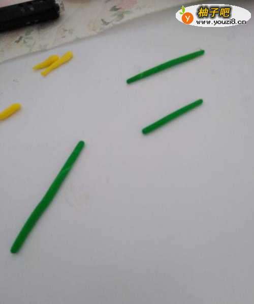 4绿色粘土,同样三条,搓成如图所示的棒状