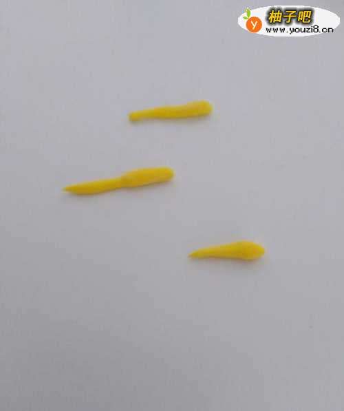 3黄色粘土,分别搓成一端粗一端细的棒状,三个,使其稍微晾干来具有一定的强度