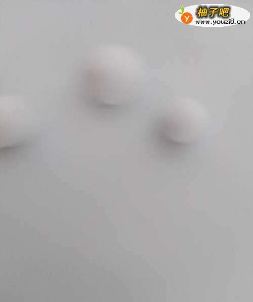 白色粘土,揉匀,如图分成了三部分,均揉成了球状