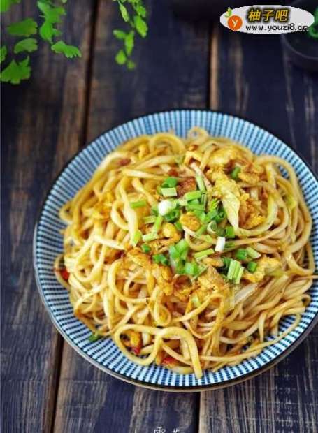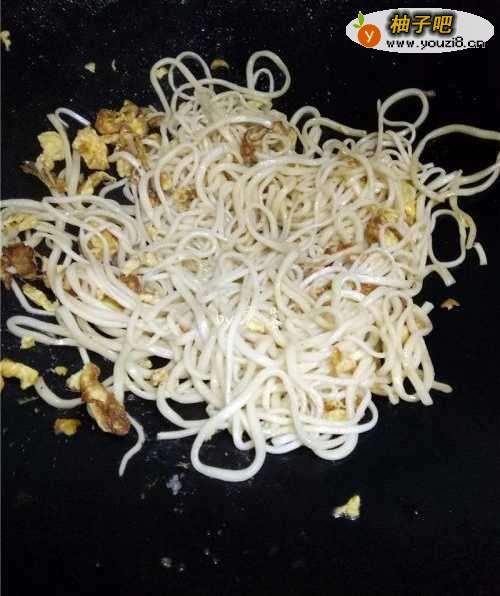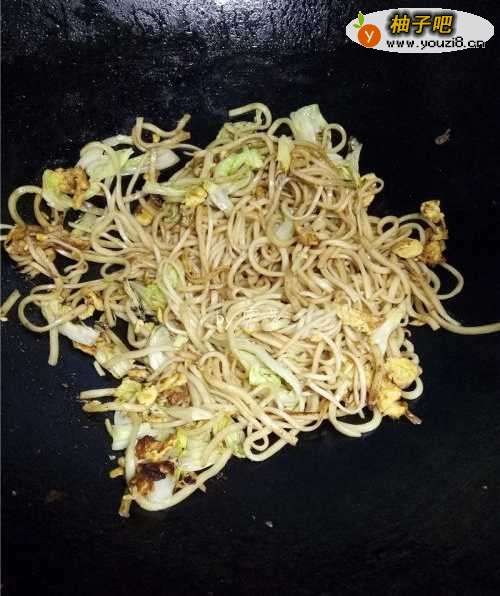 6放入面条翻炒;放入白菜翻炒;