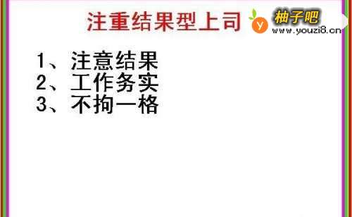 第一,如果自己的上司是只注重结果不注重具体的细节,那么我们就应踏踏实实地工作,努力去完成任务,并且只要达到上司的结果,做事就应不拘一格,尽量去发挥自己的才华。