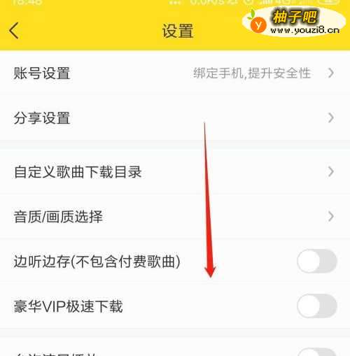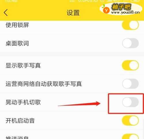 5开启晃动手机切歌右侧按钮,即可在播放歌曲时摇晃手机进入切歌