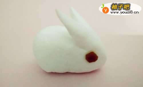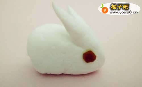 10在兔子后面捏个尖,当兔子的短尾巴。