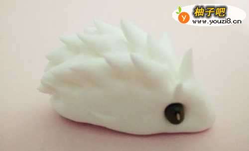 7在嘴的后面按两颗绿豆,当眼睛。小刺猬就做好了。