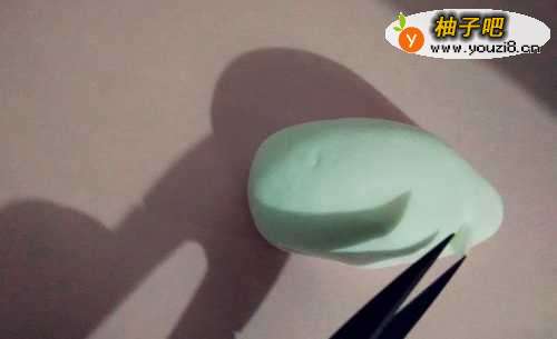 8再揉一个光滑的小面团,两头都是圆的,只是一头大一头小。