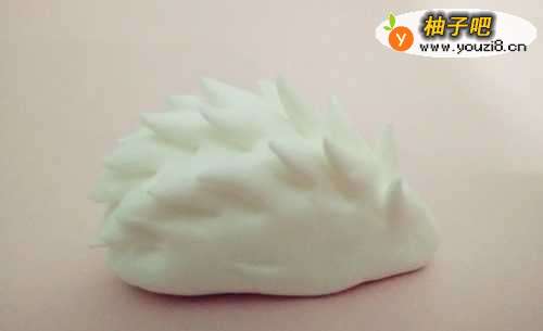 4把其中一团搓成水滴状,尖的一端当刺猬的嘴。
