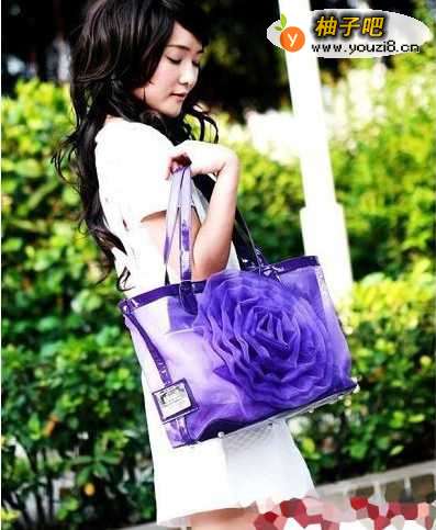 包包搭配技巧1:晶莹透明的亮丽色泽会让你显得更为年轻,因此配以裙装妩媚动人,配以潮流tee更为妩媚动感。