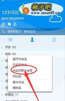 4如果需要对其中一个组进行消息群发,只要在该群名称上,右键鼠标,点击向组员群发信息